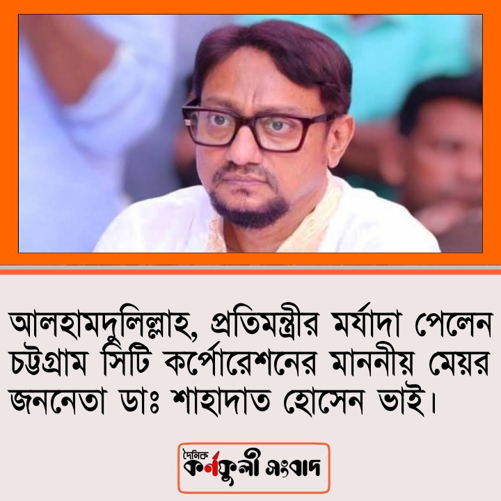 প্রতিমন্ত্রী’র মর্যাদা পেলেন, চট্টগ্রাম সিটি কর্পোরেশনের মাননীয় মেয়র জননেতা ডাঃ শাহাদাত হোসেন ভাই।