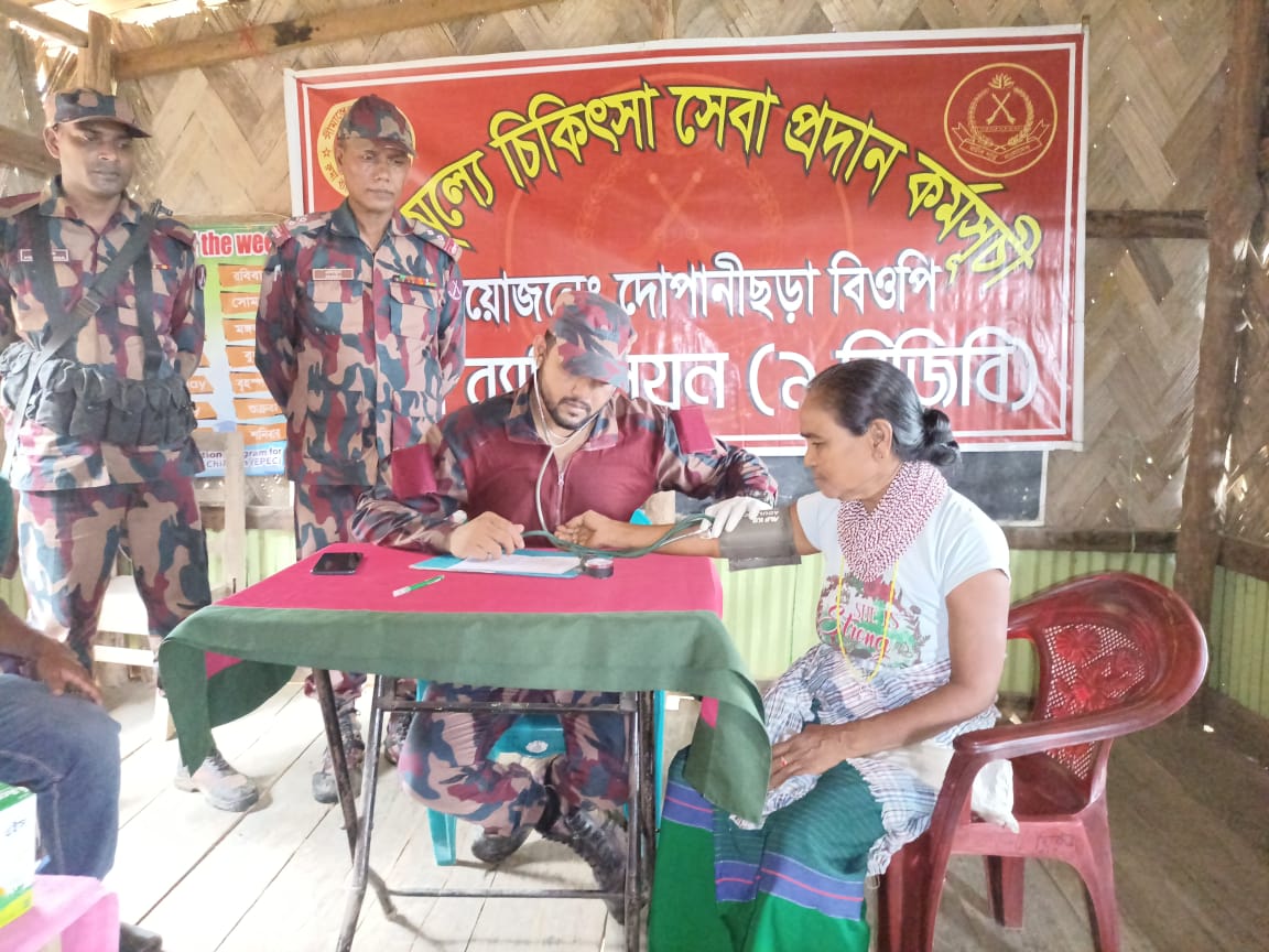 রুমা ব্যাটালিয়ন (৯ বিজিবি) দোপানীছড়া বিওপি’র আওতাধীন দোপানীছড়া পাড়ার স্থানীয় জনসাধারণের স্বাস্থ্য সেবায় মেডিকেল ক্যাম্পেইন পরিচালনা প্রসংগে গত ৩১ জুলাই