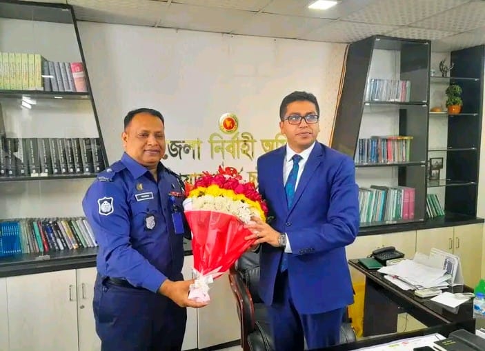 নবাগত ইউএনওকে স্বাগত ফুলেল স্বাগত জানান বোয়ালখালী থানার ওসি গোলাম সারোয়ার