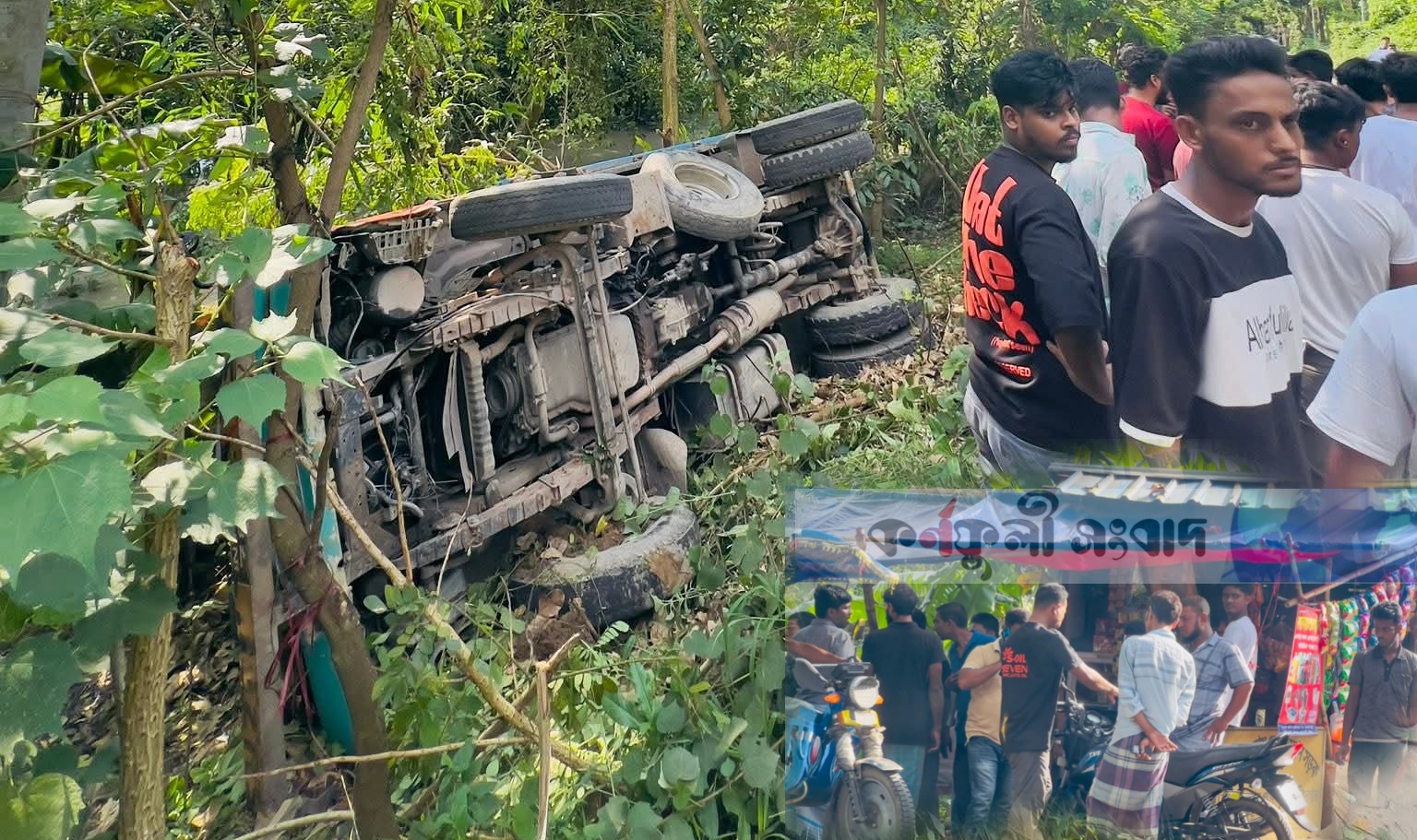 আরাকান সড়কে ডাম্পার উল্টে, মোটরসাইকেল আরোহী আহত