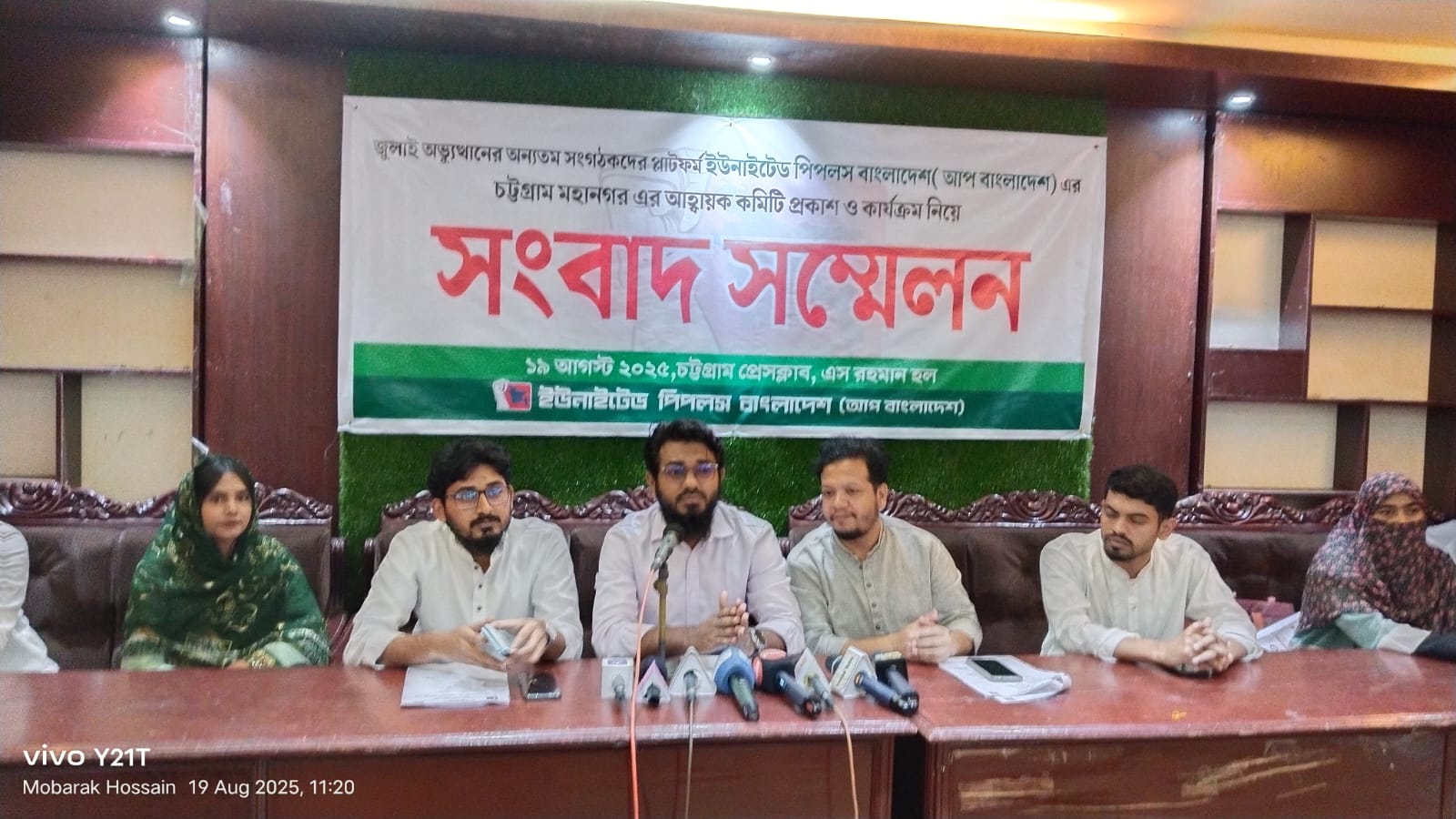 গত ১৯শে আগস্ট ২০২৫ মঙ্গলবার সকাল ১১ টায় চট্টগ্রাম প্রেস ক্লাবে সাংসদ সম্মেলনের মাধ্যমে ইউনাইটেড পিপলস বাংলাদেশ (আপ বাংলাদেশ) চট্টগ্রাম