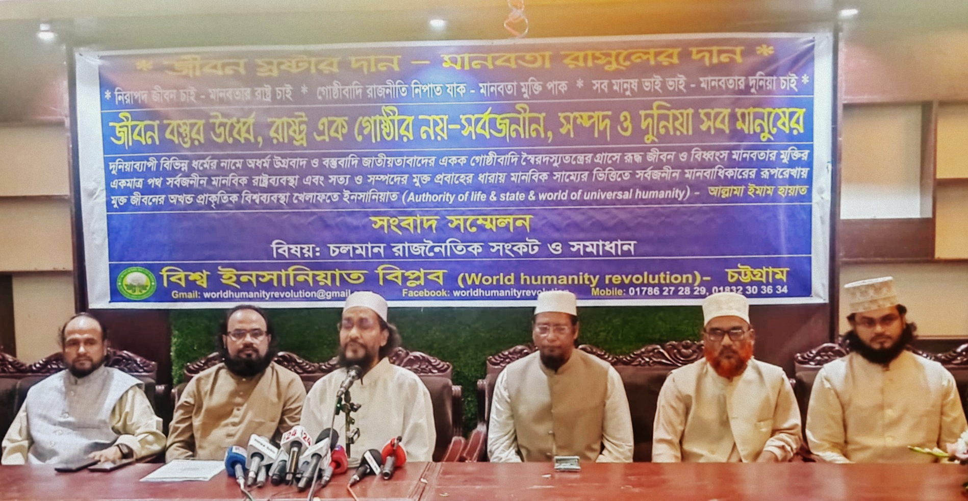 মোঃ শহিদুল ইসলামঃ চলমান রাজনৈতিক সংকটে সমাধান সম্পর্কে আজ সোমবার ২৩শে ডিসেম্বর চট্টগ্রাম প্রেসক্লাবে ইনসানিয়াত বিপ্লবের উদ্যোগে এক সংবাদ সম্মেলন