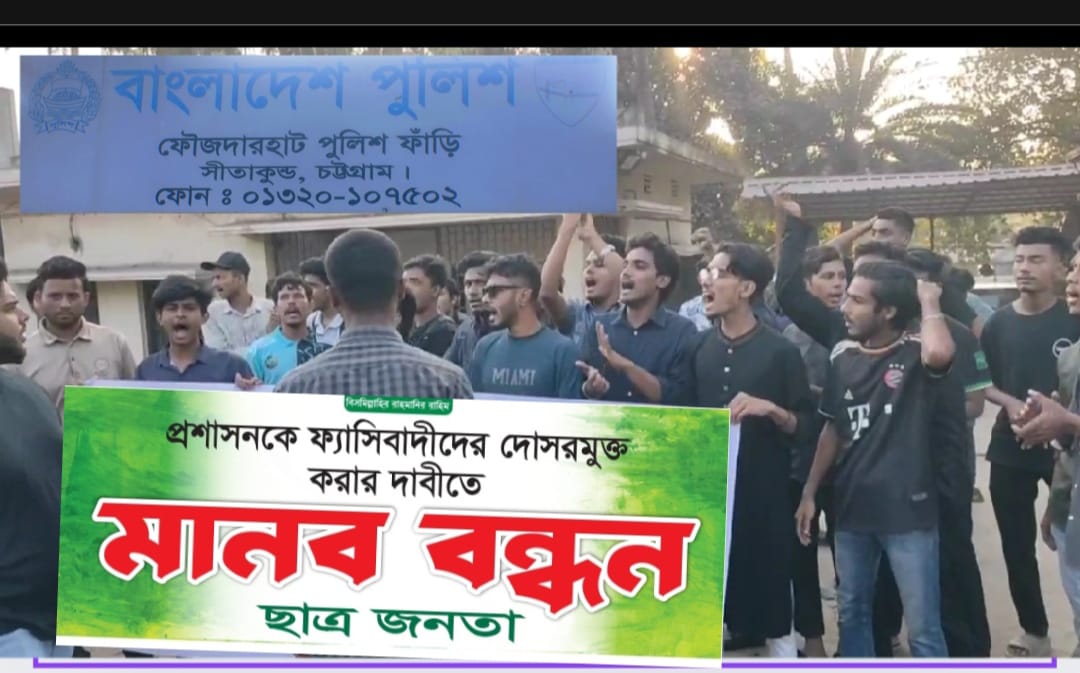 অবৈধ বদলি প্রশাসনকে ও চট্টগ্রাম সীতাকুন্ড ফৌজদারহাট পুলিশ ফাঁড়ির এএসআই মাসুদকে অবৈধ বদলি প্রশাসনিক ফ্যাসিবাদীদের দোসর মুক্ত করার দাবীতে ছাত্র জনতার মানব বন্ধন